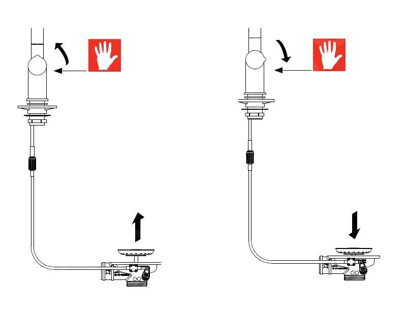 De kraan bevat een speciale Twist bediening die het openen en sluiten van de afvoer regelt, zodat het water wordt afgevoerd zonder dat u uw handen in de spoelbak hoeft te steken.