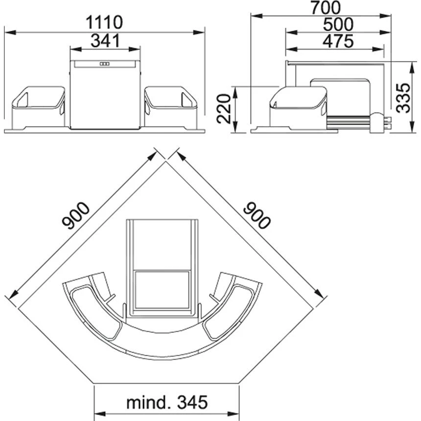 - minimale montageruimte: 1110 x 700 x 335 mm