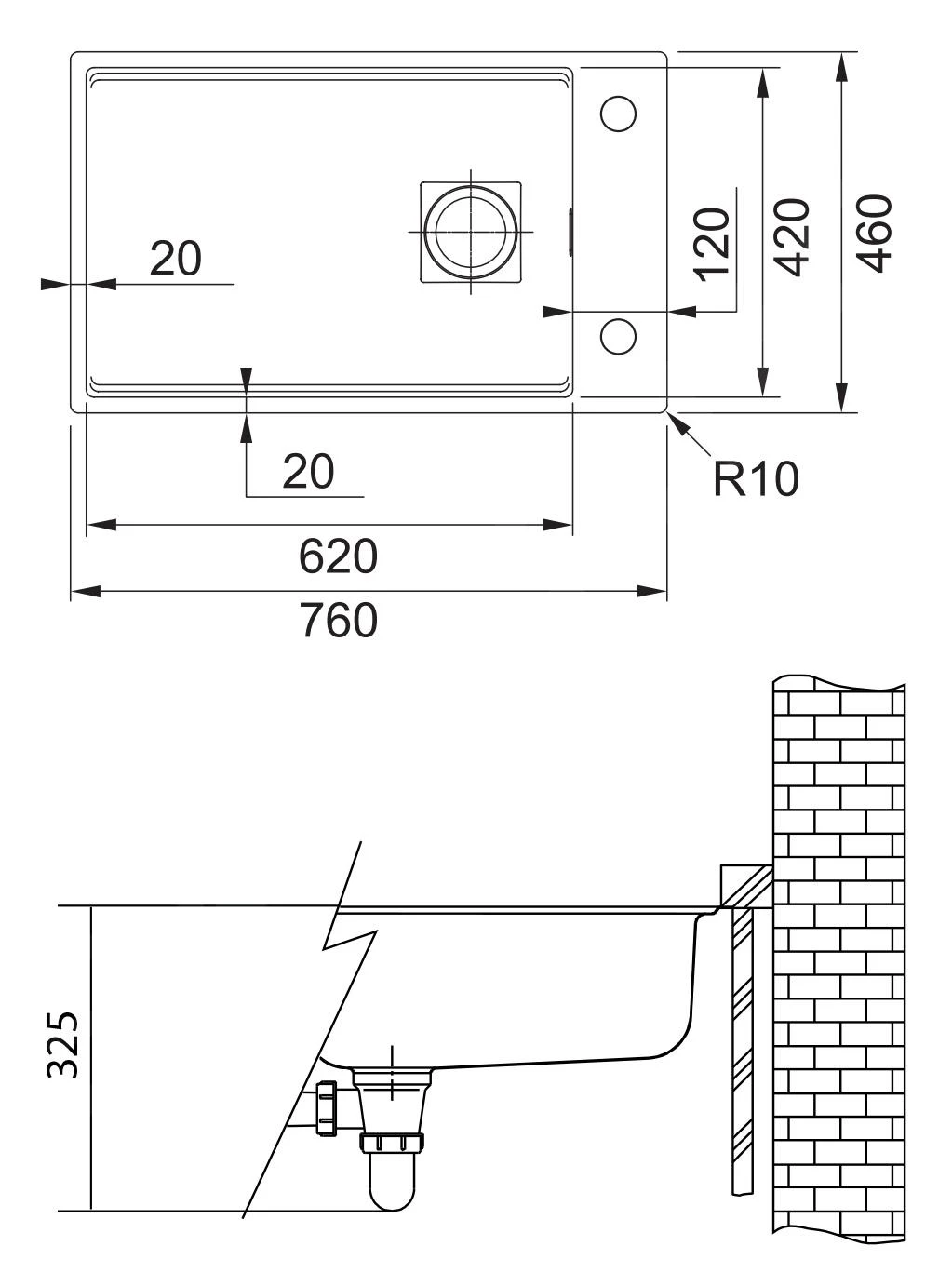 De gootsteen is voorzien van een verlaagd niveau waarop je bijvoorbeeld een rooster kunt plaatsen en zo een extra werkplek krijgen. Deze rooster alsook andere praktische accessoires is apart te verkrijgen. De fragraniet spoelbak Franke Kubus 2 meet 760×460 mm, de spoelbak zelf meet 620 x 420 x 200 mm. De spoelbak is geleverd inclusief een easy click afvoerzeef en een aantrekkelijke vierkante RVS afdekkap.