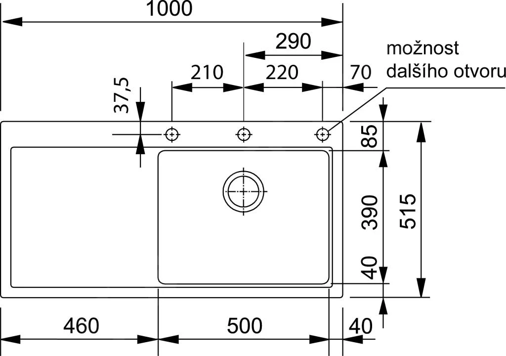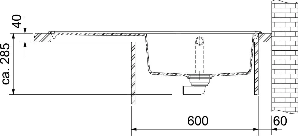 Granieten spoelbak MTG 611/7, afdruipdeel links