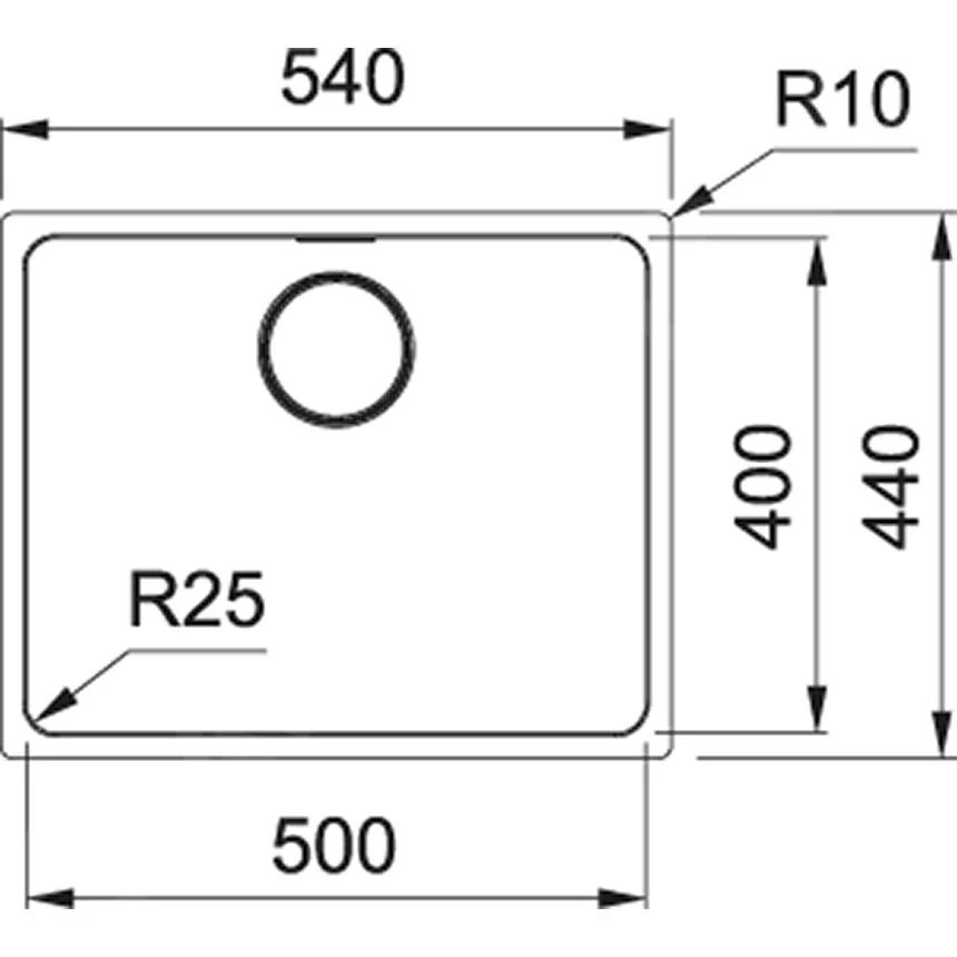 - uitsnede 500 x 400 mm (radius 25 mm)