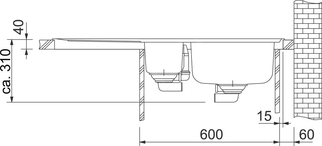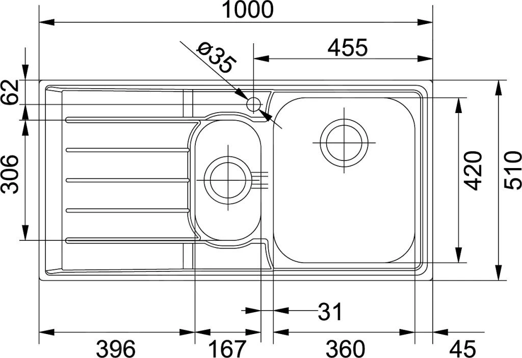 NEX 651/7 roestvrijstalen spoelbak met afdruipgedeelte links