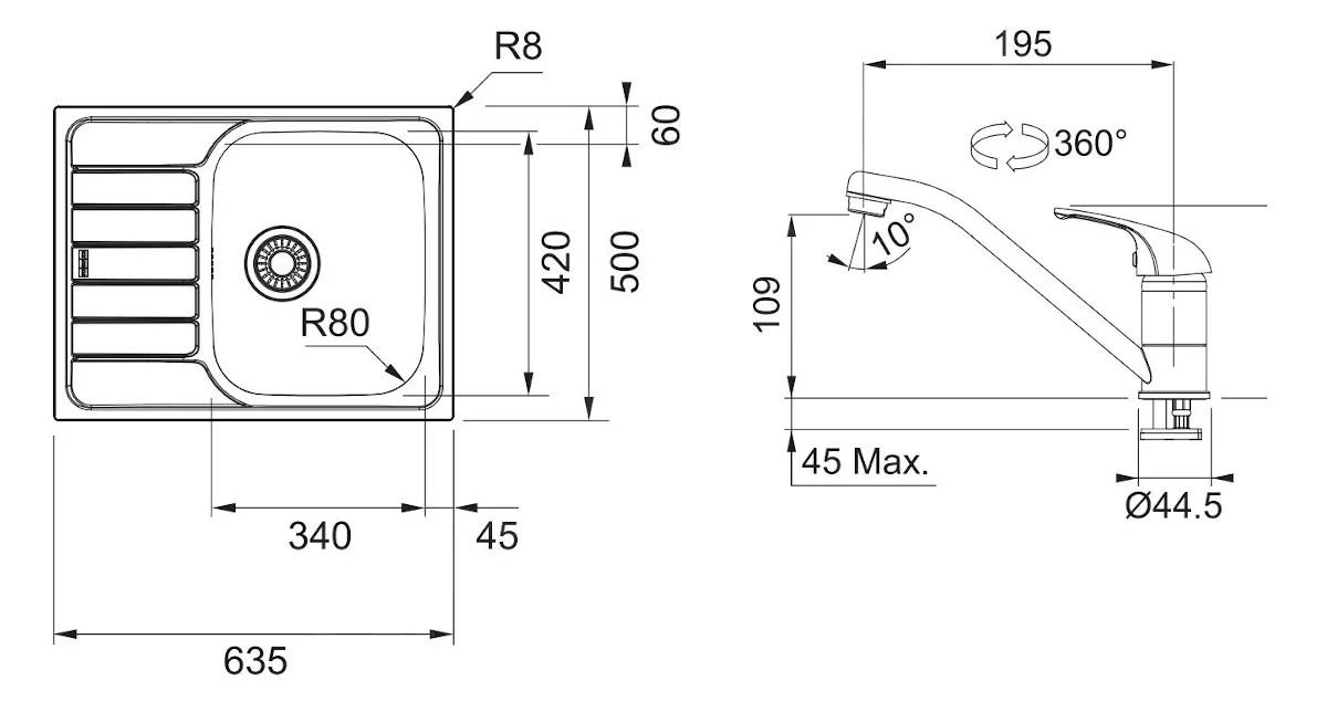 - omkeerbaar, afdruipgedeelte kan links of rechts worden geplaatst