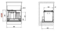 De afvalbakken van de reeks 350, Trolley Vario en Easysort worden geplaatst in een behuizing met uittrekmechanisme. De behuizing is voorzien van een reling en hoge zijwand. Voor deze afvalbakken raden wij de volledig uittrekbare systemen Blum, Grass of Hettich aan.
