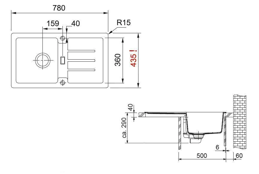 Fragranite spoelbak STG 614/-78, opbouw