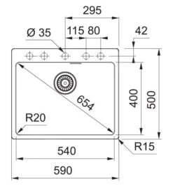 Franke Maris – Fragraniet Spoelbak MRG 610-54 FTL, 590×500 Mm, Mat Zwart 114.0661.453