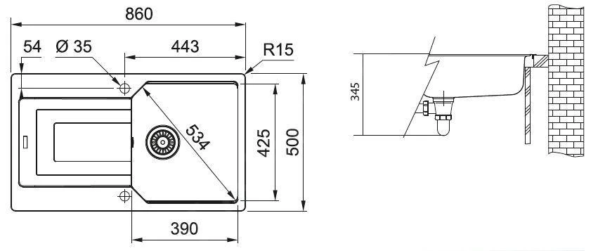 Fragranite spoelbak UBG 611-86, opbouw