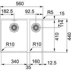 Franke Sirius – Tectonite Spoelbak SID 160/2, 560×440, Grijs 125.0582.208